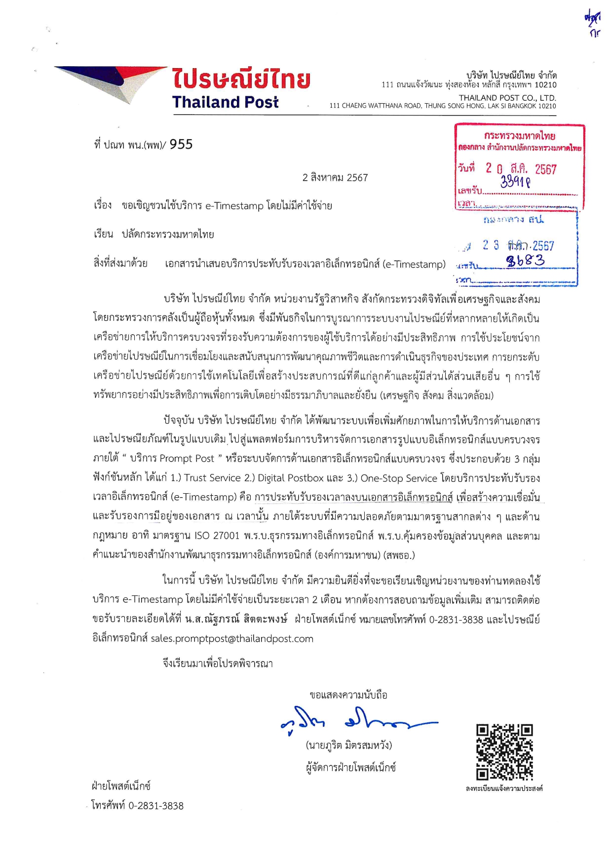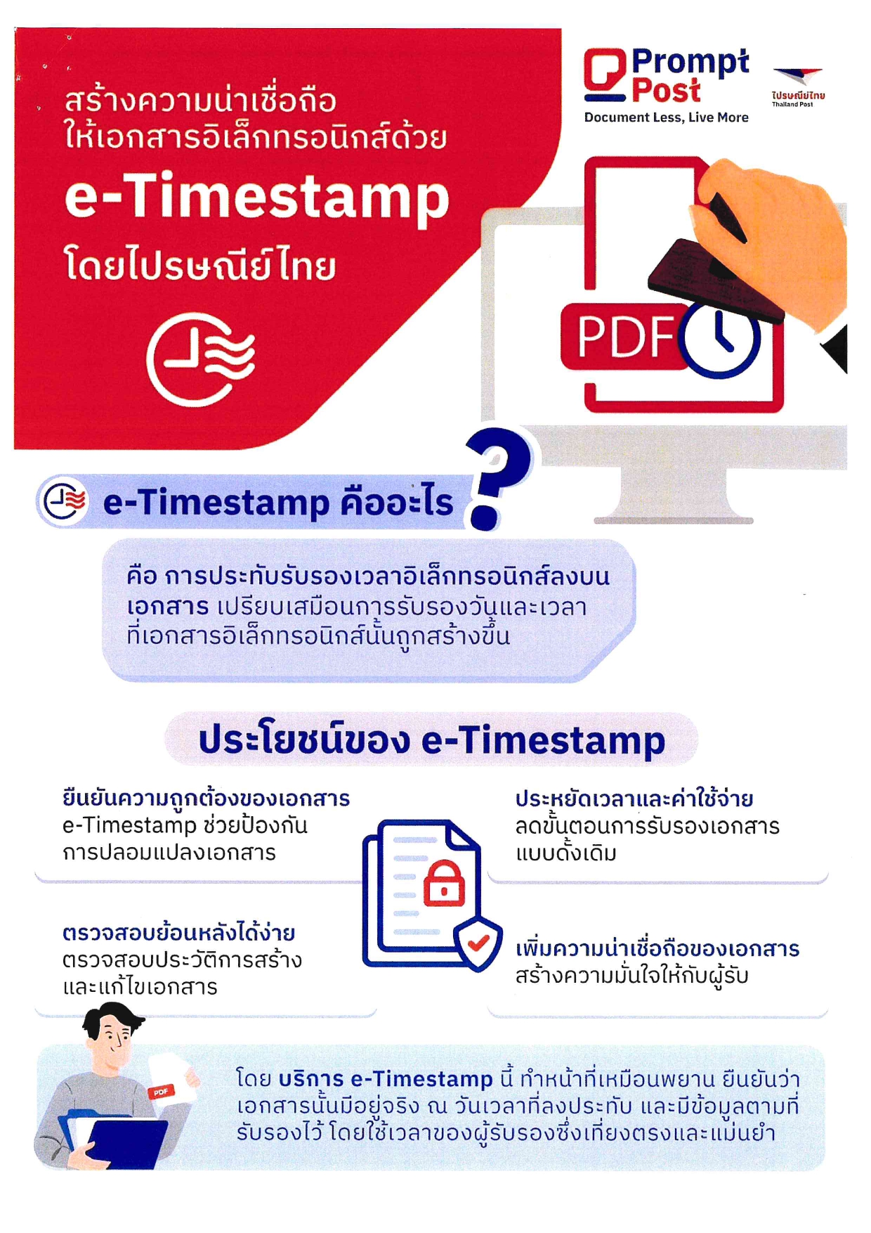 บริษัท ไปรษณีย์ไทย จำกัด ขอเชิญชวนให้ทดลองใช้บริการ e-Timestamp