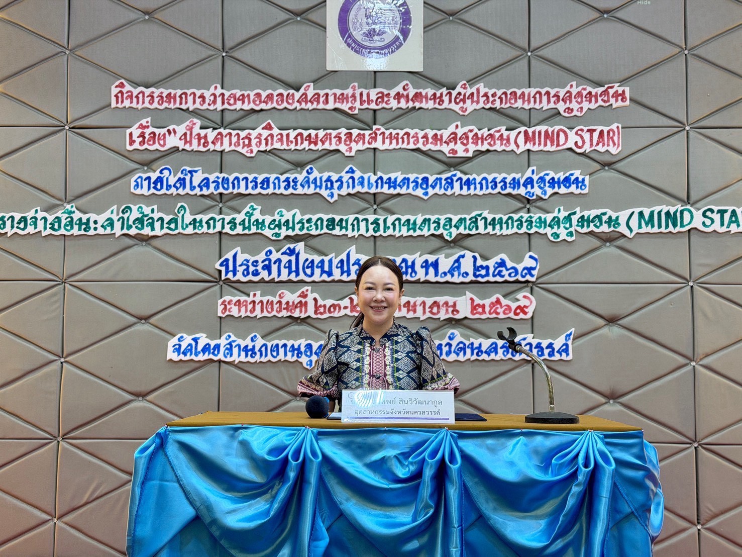 ระหว่างวันที่ 23-24 เมษายน 2569 เวลา 08.30-16.30 น. กลุ่มส่งเสริมและพัฒนาอุตสาหกรรม สำนักงานอุตสาหกรรมจังหวัดนครสวรรค์ ดำเนินการจัดกิจกรรมการถ่ายทอดองค์ความรู้และพัฒนาผู้ประกอบการคู่ชุมชน เรื่อง ”ปั้นดาวธุรกิจเกษตรอุตสาหกรรมคู่ชุมชน (MIND STAR)“ ภายใต้โครงการยกระดับธุรกิจเกษตรอุตสาหกรรมคู่ชุมชน งบรายจ่ายอื่น: ค่าใช้จ่ายในการปั้นผู้ประกอบการเกษตรอุตสาหกรรมคู่ชุมชน (MIND STAR) ประจำปีงบประมาณ พ.ศ. 2569 โดยมีผู้ประกอบการเข้าร่วม จำนวน 20 ราย และได้รับเกียรติจาก นายภูวศิษฐ์ วีระปัญญาวัฒน์ ผู้บริหาร บริษัท ไทรฟ์ อัลไลแอนซ์ จำกัด เป็นวิทยากร ณ ห้องคริสตัล โรงแรมแกรนด์ฮิลล์ รีสอร์ท แอนด์ สปา อำเภอเมืองนครสวรรค์ จังหวัดนครสวรรค์ โดยมี นางสุคนธ์ทิพย์ สินวิวัฒนากูล อุตสาหกรรมจังหวัดนครสวรรค์ เป็นประธานในพิธีเปิด